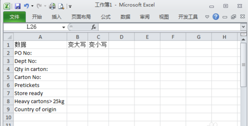 首先假设表格如下,将A1到A3单元格的大写字母转换成小写字母放进相应的B1到B3单元格,再将转换好的小写字母再转换成大写字母。