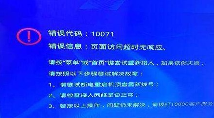 电视出现错误代码10071错误提示:页面访问超时无响应,可以按照如下方法进行解决:
