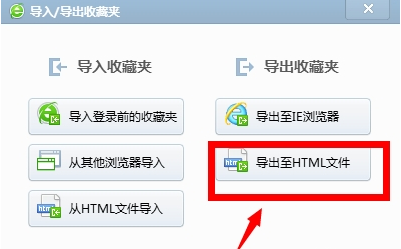 2、接着选择导出收藏夹下面的“导出至HTML文件”,选择保存位置,可以保存到桌面;