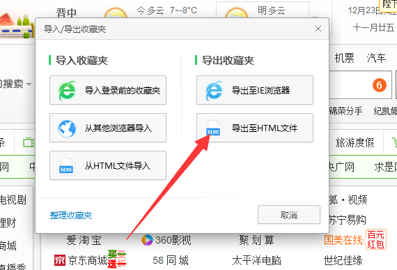360浏览器收藏夹中的网址怎样转移到别的浏览器收藏夹中?