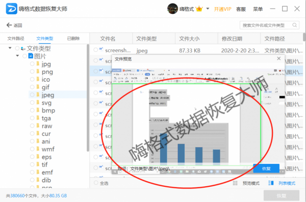 4、选中我们所需要恢复的文件,并双击文件进行预览,确定完成后点击恢复,选择恢复文件存储的路径,并点击“恢复”即可找回丢失文件。