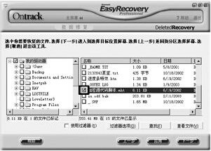 6、经过3~4分钟的扫描后结果就出来了,点击左面文件夹列表中的文件夹,在右面列出来到文件就是能被恢复的删除文件,选择一个要恢复的文件,一定要把前面的勾打上,然后点击“下一步”。