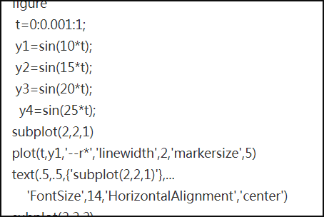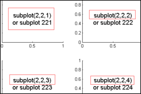 首先,它的调用是这样子的:subplot(numbRow , numbCol ,plotNum ) or subplot(numbRow numbCol plotNum),可以不用逗号分开直接写在一起也是对的;