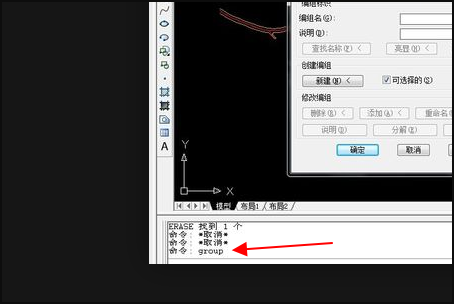 2、之后在命令行里,点击输入group命令,然后按下enter键确认。