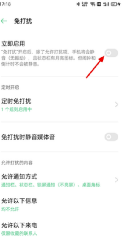 2、在免打扰页面,关闭立即启用。