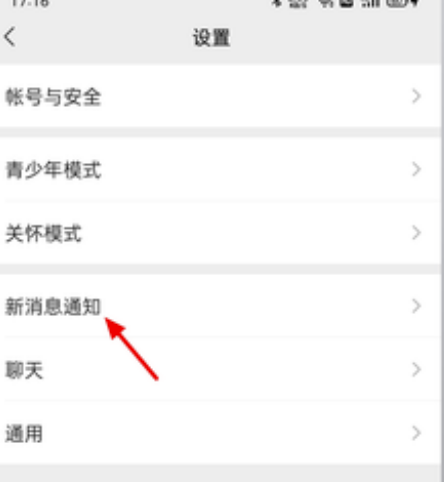 ②在设置页面,点击新消息通知。
