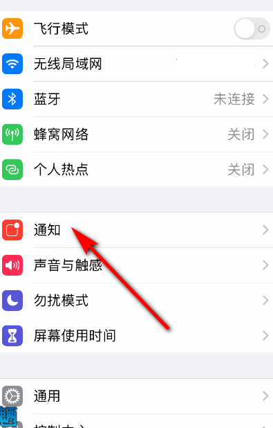 2、找到通知。