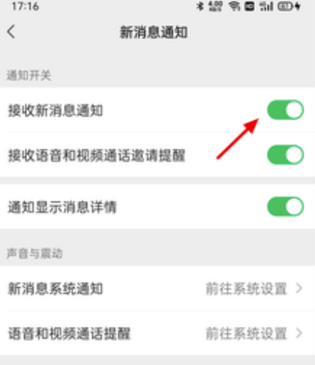 ③在新消息通知页面,开启接收新消息通知。