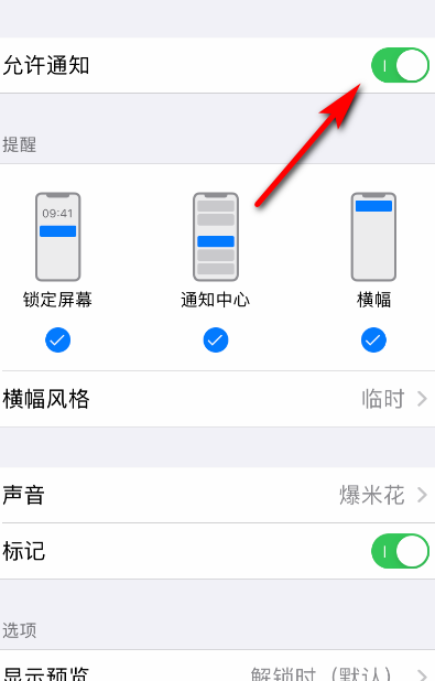 ⑤在允许通知界面,打开允许通知,这样就可以恢复提示。