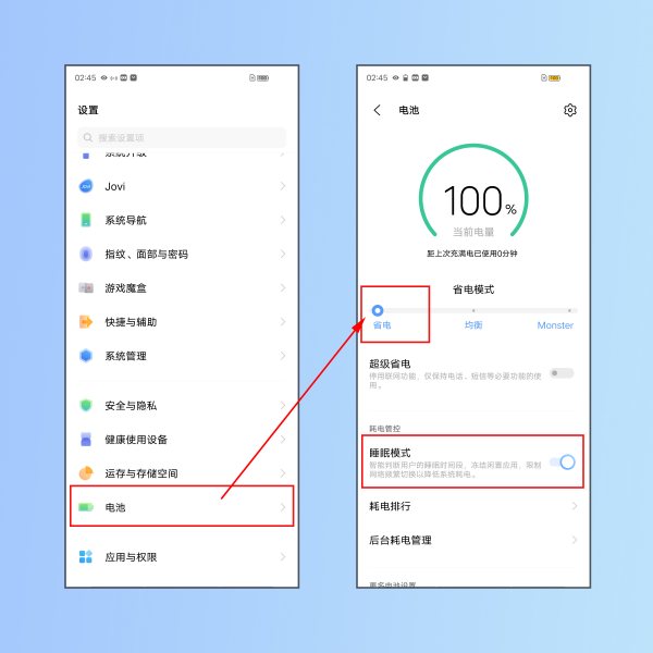 若开启了“睡眠模式”,系统会在夜间冻结闲置应用,以节省电量,可以进入设置--电池--更多设置--睡眠模式--根据需要开关功能。