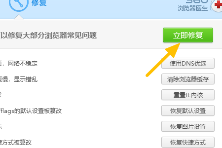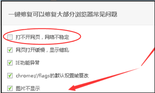 因为没有勾选“打不开网页,网络不稳定”,启用浏览器医生进行修复就可以了。