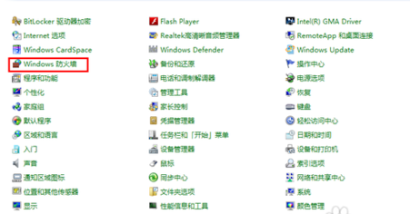 4、在开始菜单中打开控制面板,在控制面板中打开windows防火墙选项。