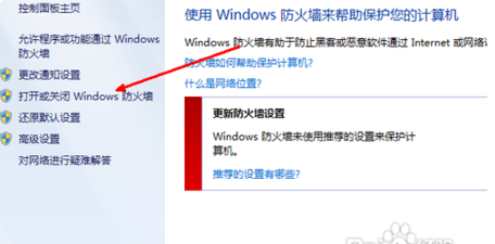 5、在防火墙的设置页面中,点击左边导航栏中的打开或关闭防火墙选项。