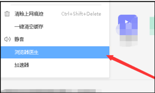 1、首先打开360浏览器,点击选择下方“浏览器医生”图标按钮。