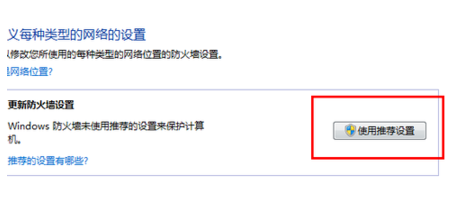 6、点击之后,会有一个使用推荐设置的按钮,点击之后,会回到系统默认的状态,一般其拦截的程序也即会放开,便可以正常上网页了。