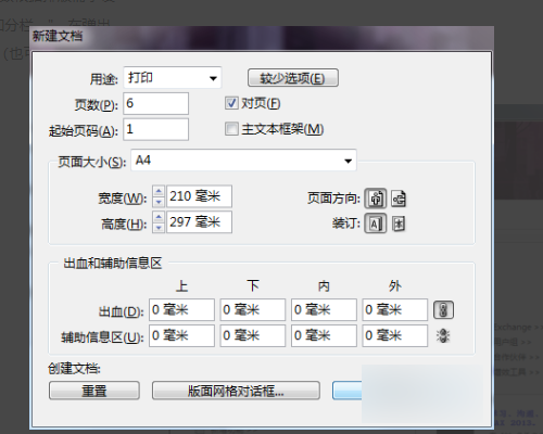 1、打开软件,新建文档,页数根据排版需求设置。点击右下角的"边距和分栏…",在弹出的窗口点击“确定”即可。