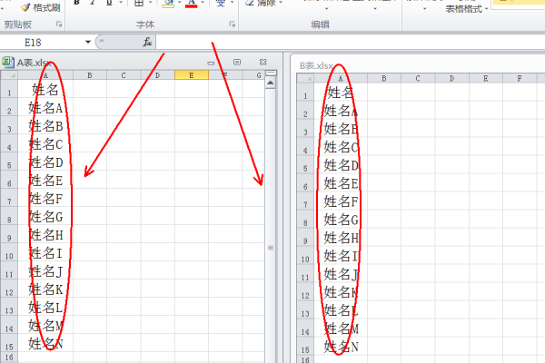 A,B两张excel工资表,人员都一样,但姓名顺序不同,如何排序,使A表与B表的姓名顺序都能一致?