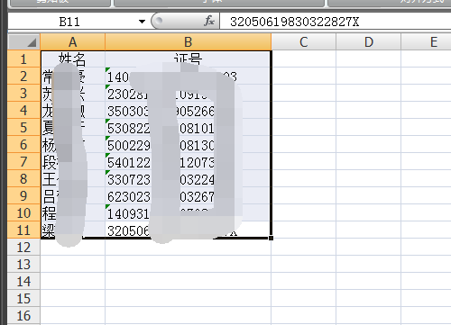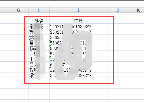 一、如下图,首先进入到有姓名和证号的文件中,选中需要复制的区域。