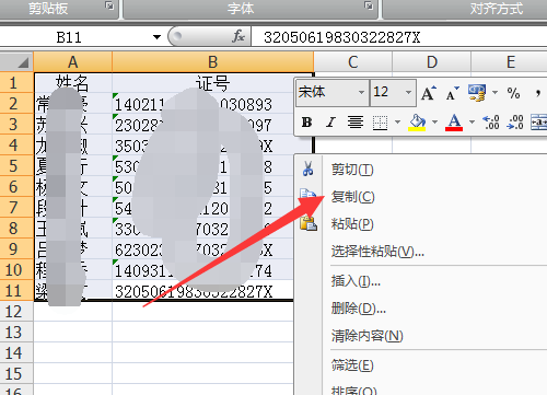 直接复制—粘贴过去就可以了,粘贴过去后会自动分列成姓名和证号的。下面演示:
