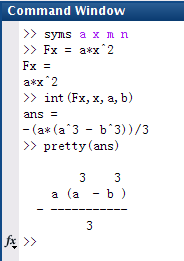 3、通过上面这个方法,就能够求得任意一个函数在给定区间的积分,如果想看到书写的格式,可以用pretty命令,这样显示更接近平常的表示方法。