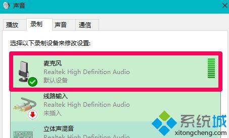 12、在声音 - 录制窗口,也已经显示了麦克风的设备。
