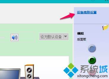 5、在打开的Realtek高清晰音频管理器窗口,我们点击右上角的【设备高级设置】;