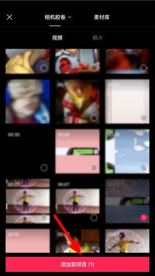 2、进入制作页面以后,勾选素材后,点击添加到项目。