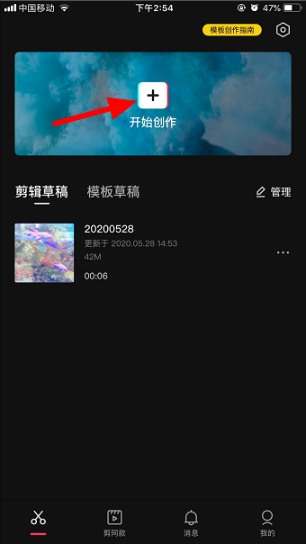 1、打开剪映APP,然后点击“开始创作”,进行制作剪辑。
