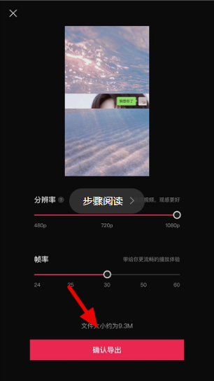 4、点击“导出”以后,调整分辨率以及帧率,然后点击下方的“确认导出”。