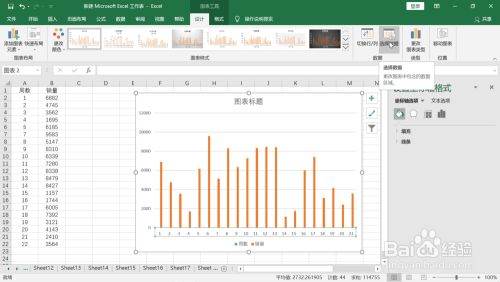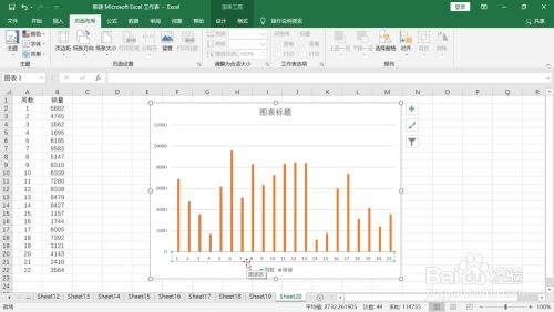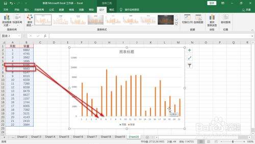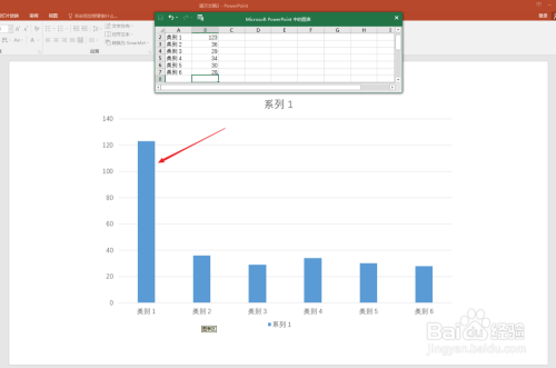 在自动打开的Excel表格中输入源数据,柱状图自动生成。可以看到,大多数数据都比较接近,但是其中一个数据异常大,使得柱形很高,其余柱形的变化趋势都得不到体现。