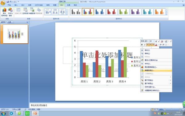 PPT2007中,选择柱状图——右击——编辑数据——在弹出的Excel表中修改数据即可。