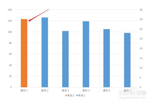 在打开的窗口中,点击左侧的【组合】,在右侧,两个数据列都选用簇状柱形图,把正常数据所在的【系列1】勾选【次坐标轴】。