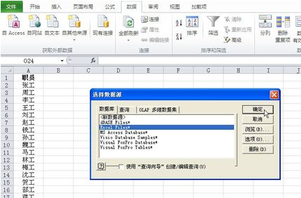 3、选择数据源:EXCEL FILES*,不要勾选"使用查询向导" 确定。