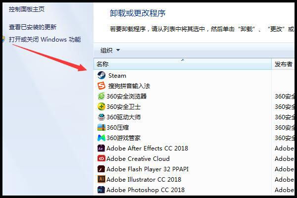 3、在程序选项卡中点击程序和功能选项卡,进入程序列表界面。