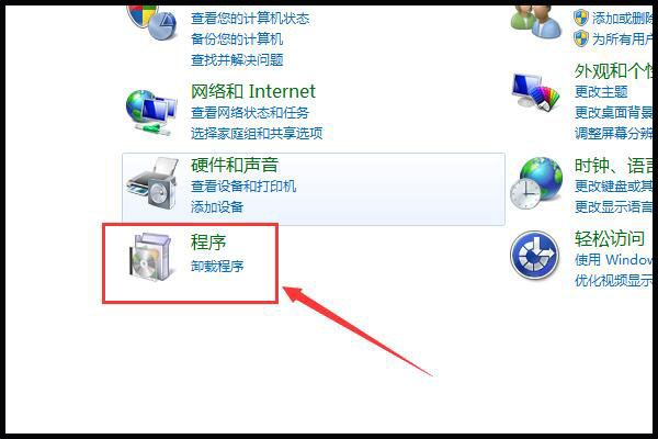 2、在控制面板界面中在左下角找到程序选项卡,点击程序选项卡进入程序管理界面。