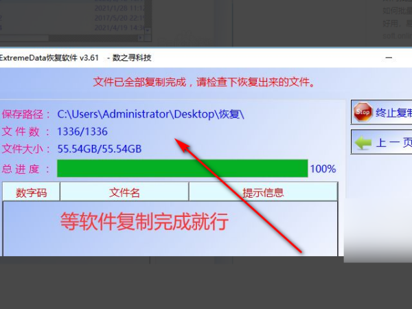 4、最后一步只需等待程序将数据复制完成就可以了 。