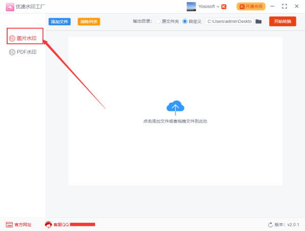 步骤1,下载工具软件后安装打开,点击软件左边的【图片水印】功能,进入下一步操作。
