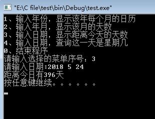 printf("距离今日有%d天\n按任意键继续。。。。。。\n",getDuration(year,month,day)),getch();