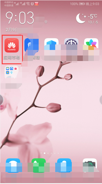 1、首先先打开手机界面,然后点击“应用市场”图标。