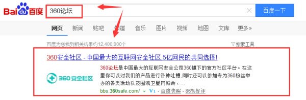 一,如果不知道360论坛的,可以直接在百度上进行搜索查找,如下图。