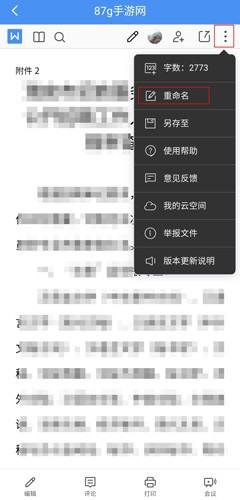 金山文档想要改文件名,可以找到文件后面的三点处直接给文件重命名,以下为详细步骤说明 : 品牌型号: 华为P40 系统版本: EMUI10.1.0 软件版本: 微信8.0.14 方法/步骤分步阅读 1 /3 选择小程序 打开微信,输入并点击进入金山文档小程序。 2 /3 选择三点处 找到文件,点击文件后面三点处。 3 /3 选择重命名 在弹出的菜单栏点击重命名。 金山文档的首页中找到文档,在文档的后方点击设置图标,随后进行重命名。 品牌型号: 华为 Nova5 系统版本: HarmonyOS 2.0.0 软件版本: 金山文档 v2.10.1 方法/步骤分步阅读 1 /4 金山文档的首页中选择文档金山文档小程序名怎么更改