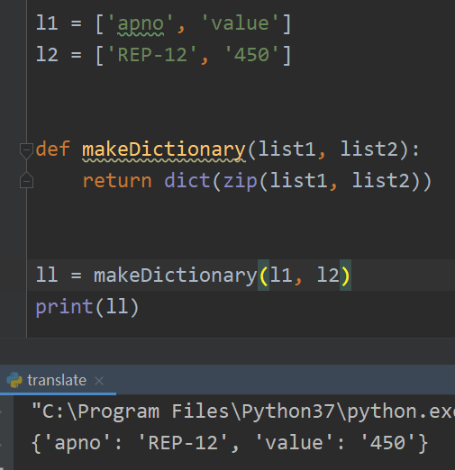 ll = makeDictionary(l1, l2)