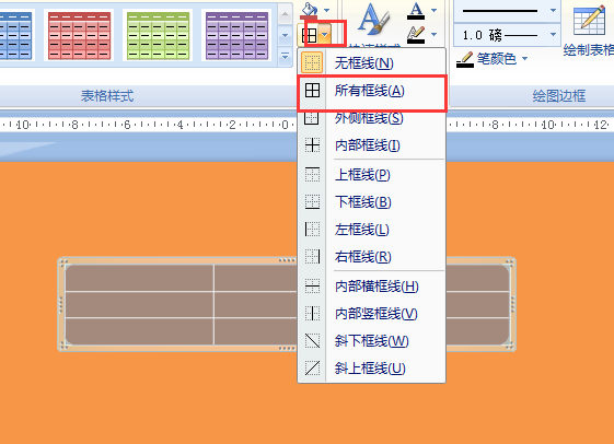 四、接着点击“边框线”,下拉菜单内点击“所有框线”。