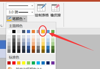 3、再点击“笔颜色”设置需要更改的边框的颜色,下图中选择了黄色。
