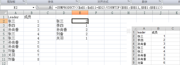 excel里SUMPRODUCT和countif来统计不重复的字符串个数