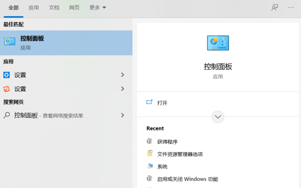 1、搜索栏搜索“控制面板”并打开