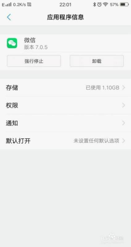 点击进入到微信的应用程序信息页面,在页面上可见“存储”和“卸载”。