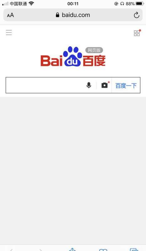 PC端净化广告就不赘述了,广告插件、拦截器“大显神通”,还可以自定义过滤器、自定义拦截页面元素等…但是你知道吗?手机端其实也能如此。可以先感受一下,下图是iPhone自带的Safari浏览器,打开的网页版百度。可以看到,除了最精简的搜索栏外,你看不到任何的多余页面元素,连信息流内容都没一点。