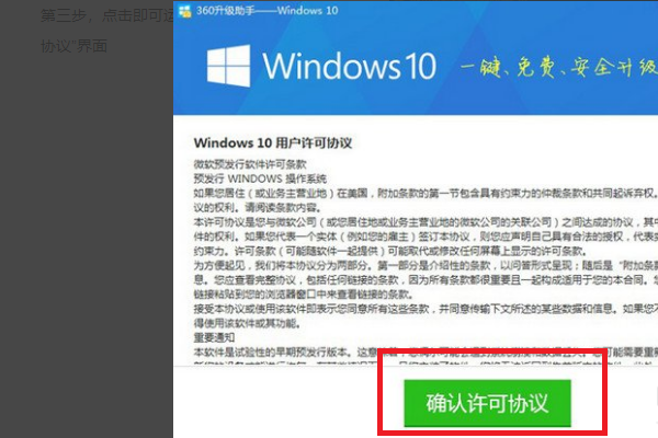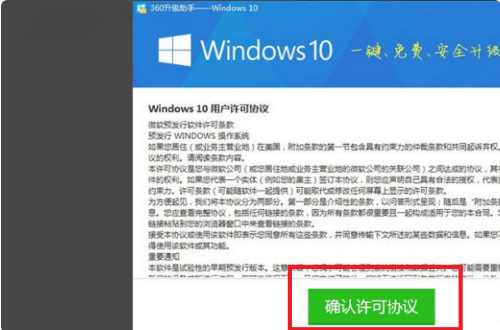 4、点击“确认许可协议”选项后,升级程序会开始对您电脑进行全方位检测。