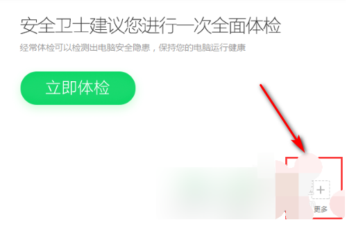 1、首先打开系统自带的打开安全卫士,点击主界面右下角的“更多”图标。
